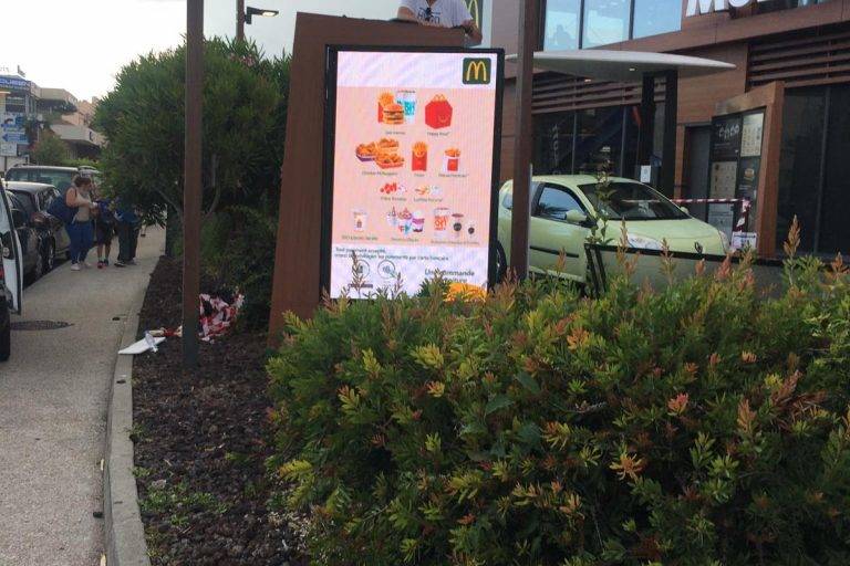 Product Model:P4 Outdoor SMD1921 Screen Size:1152 x1792mm(W*H) Location: a McDonald restaurant in France Installation time: 2020 Application: McDonald advertising LED screen, KFC ad LED sign, Restaurant chain LED screen