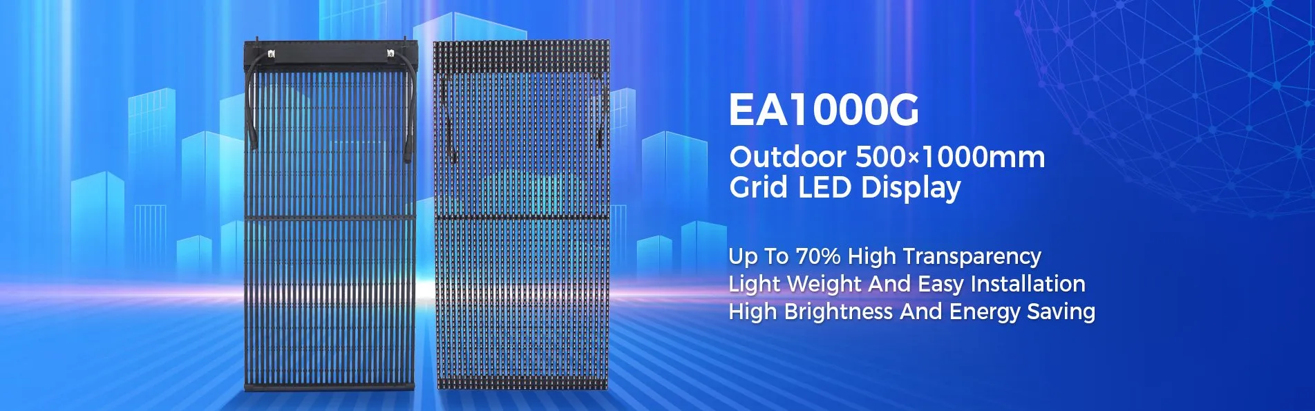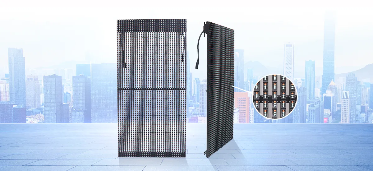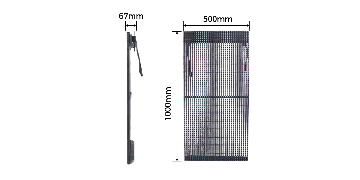Unique mesh LED display panel design with 500*1000mm cabinet size,