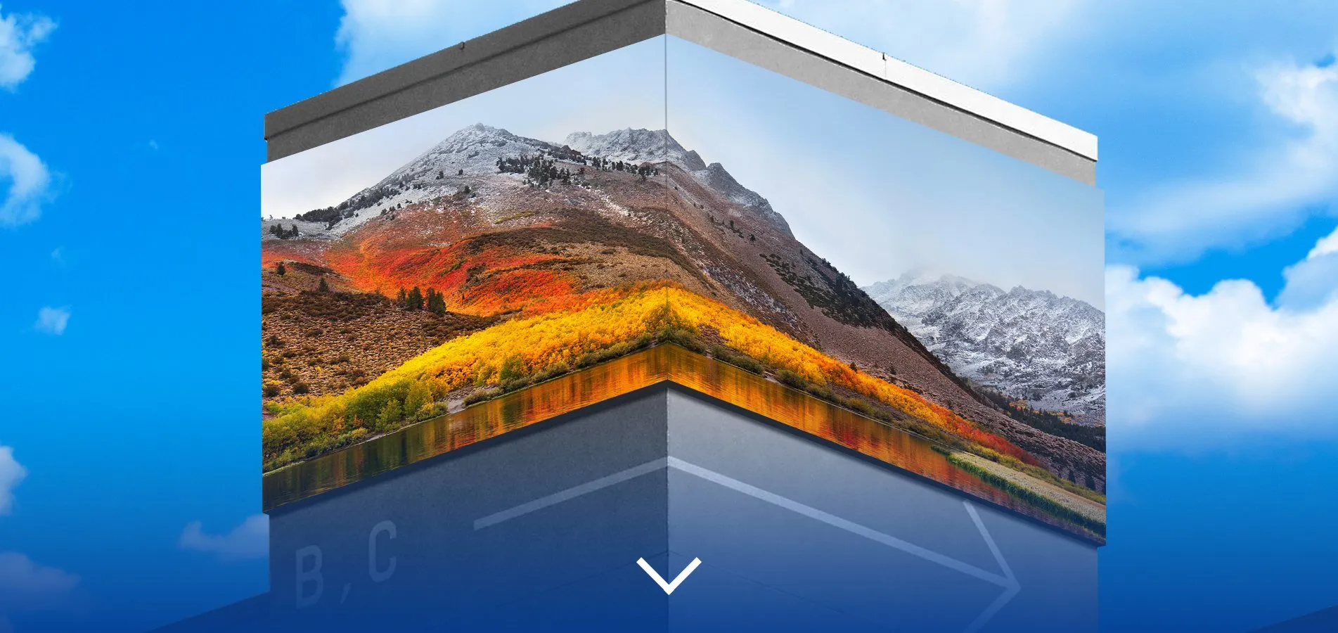 GLK45F LED display is easy to install and can be stacked or suspended. Customized 45° beveled edge cabinet supports the right-angle installation.